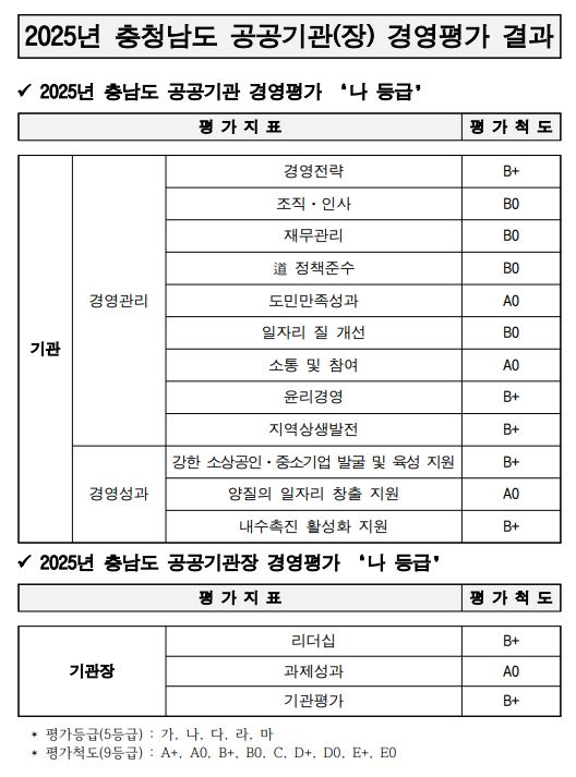 | 2025년 충청남도 공공기관 경영평가 결과 |