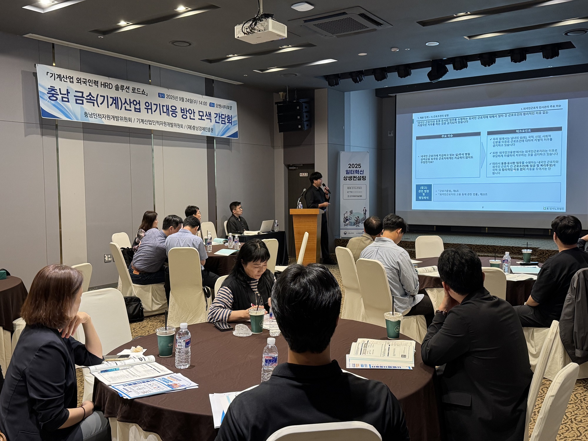 충남경제진흥원, 충남경제진흥원(원장 한권희)은 9월 24일(수) 오후 2시 천안 오엔시티호텔 볼룸홀에서‘충남 금속(기계)산업 위기대응 방안 모색 간담회’를 개최했다. 지역 금속(기계)산업의 현황을 진단하고 대응 방안을 모색하기 위해 충남 RSC 및 기계 ISC와 공동으로 추진한 이 날 간담회는 금속(기계) 산업 종사자, 고용노동부 및 道, 전문가, 기관 관계자 등 약 40명이 참석한 가운데 종사자 교육 및 지원정책 안내와 의견 청취 및 토론 등의 순으로 진행됐다. 먼저 이홍석 노무사가 첫 번째 발제자로 나서 ▲근로자 인사관리 주요 이슈와 대응 방안을 설명한 후 김수현 행정사가 ▲외국인근로자 채용 및 체류관리를 주제로 발표했다. 이어서 진행된 토론에서는‘금속(기계)산업 위기대응 및 지원사업 고도화 방안’을 주제로 현장의 다양한 의견을 청취하고 심도 있는 논의가 진행되었다. 한권희 충남경제진흥원장은“글로벌 공급망 재편, 산업 구조조정과 고용 불안 등 복합적인 위기에 직면해 있는 도내 금속산업의 실태를 살펴보고 대응 방안을 논의하는 소중한 시간이 됐다”라며, “이번 간담회를 통해 제안된 내용을 정책 사업화하여 도내 금속산업의 위기 극복과 경쟁력 강화에 앞장서겠다”고 밝혔다. 한편, 충남경제진흥원은 금속산업 지원을 위한 △수요·공급조사 및 직업훈련, △충남 금속산업 청년 취업지원 특화패키지 등 다양한 사업을 추진하고 있다. 사업 관련 문의 ▶ 충남경제진흥원 일자리지원팀 |