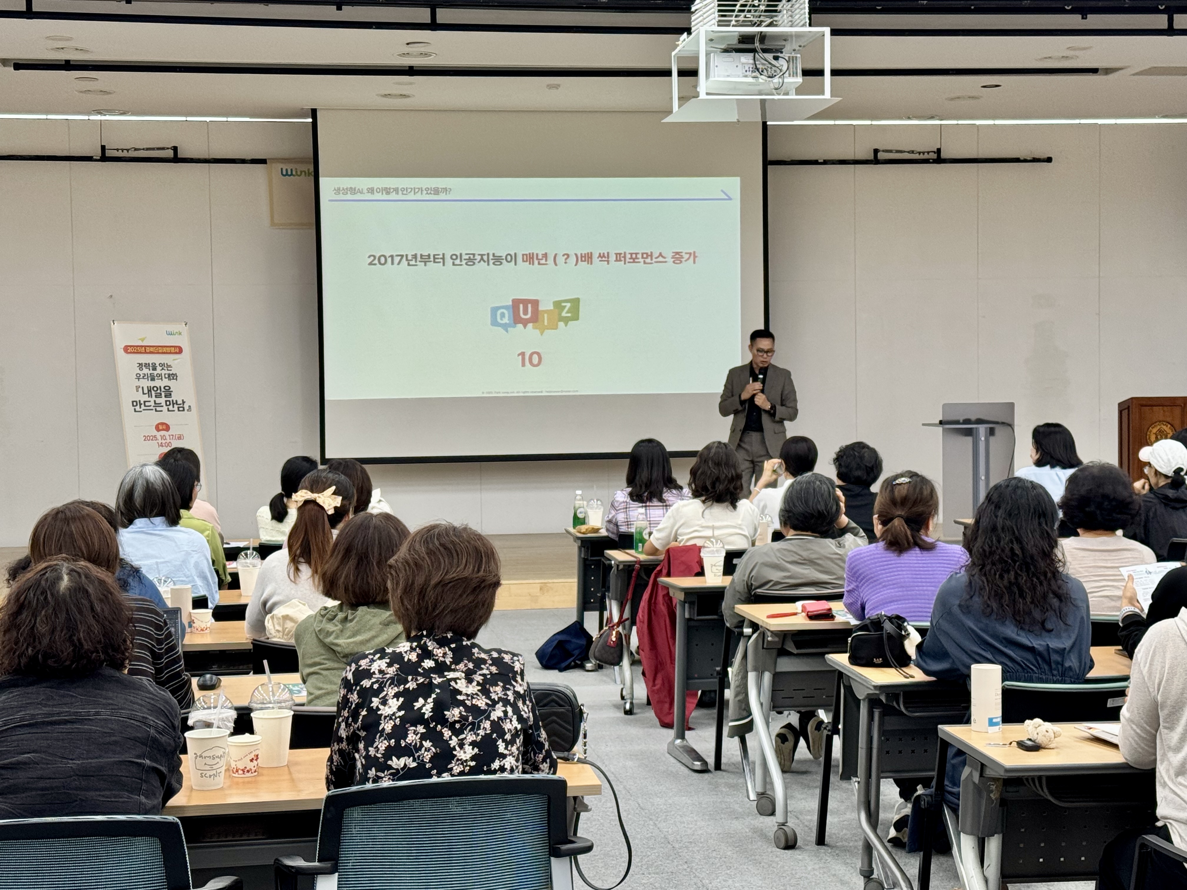 충남광역새일센터, 공주서 3회차 경력단절예방 토크콘서트 개최 - AI 시대, 여성의 경력을 잇는 새로운 대화 - 충남경제진흥원(원장 한권희) 내 충남광역여성새로일하기센터(이하 충남광역새일센터)와 공주여성새로일하기센터는 10월 17일(금), 공주대학교 옥룡캠퍼스에서 경력단절 여성과 구직자 30여 명이 참여한 가운데 「2025년 경력단절예방 토크콘서트 – 경력을 잇는 우리들의 대화: 내일을 만드는 만남」 제3회차를 개최했다. 이번 토크콘서트는 충남 도내 경력단절예방행사의 일환으로 진행된 세 번째 프로그램으로, AI·디지털 실무 역량을 주제로 여성들의 자신감 회복과 재도전을 돕기 위해 마련되었으며, 실무와 경력개발에 AI를 어떻게 활용할 수 있을지를 함께 모색했다. 행사에서는 ▲행정·사무 자동화 ▲마케팅·콘텐츠 제작 ▲교육·연구 등 다양한 산업 현장의 AI 활용 사례가 소개되었으며, 참가자들은 실제 현장에서의 적용 가능성을 살피며 “새로운 기술이 곧 새로운 기회가 될 수 있다”는 메시지를 공유했다. 참석자들은 “배운 내용을 실제로 어디에 쓸 수 있을지 감이 잡혔다”, “AI가 내 일에도 연결될 수 있다는 자신감이 생겼다”는 긍정적인 반응을 보였다. |