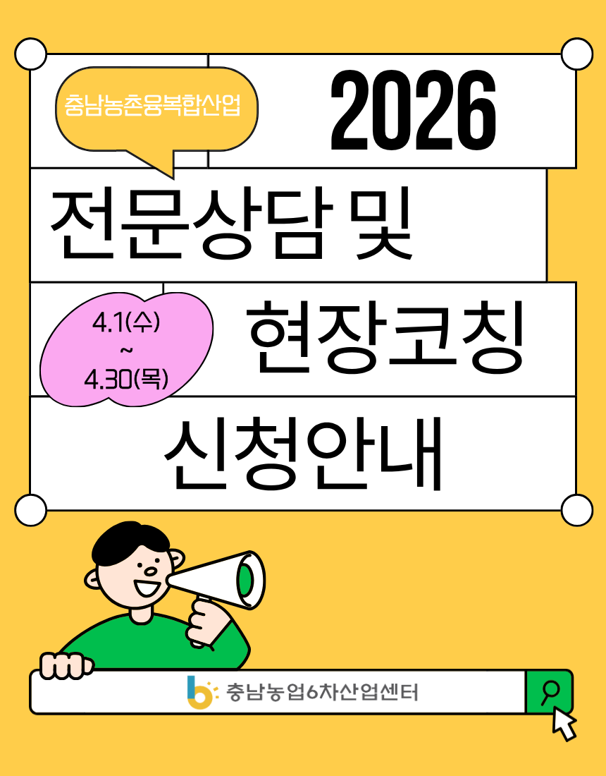 농촌융복합산업 경영체 역량 강화... 충남경제진흥원, 현장코칭 1차 모집 “농촌융복합산업 경영체 대상 맞춤형 전문가 매칭 및 애로 해소 지원”