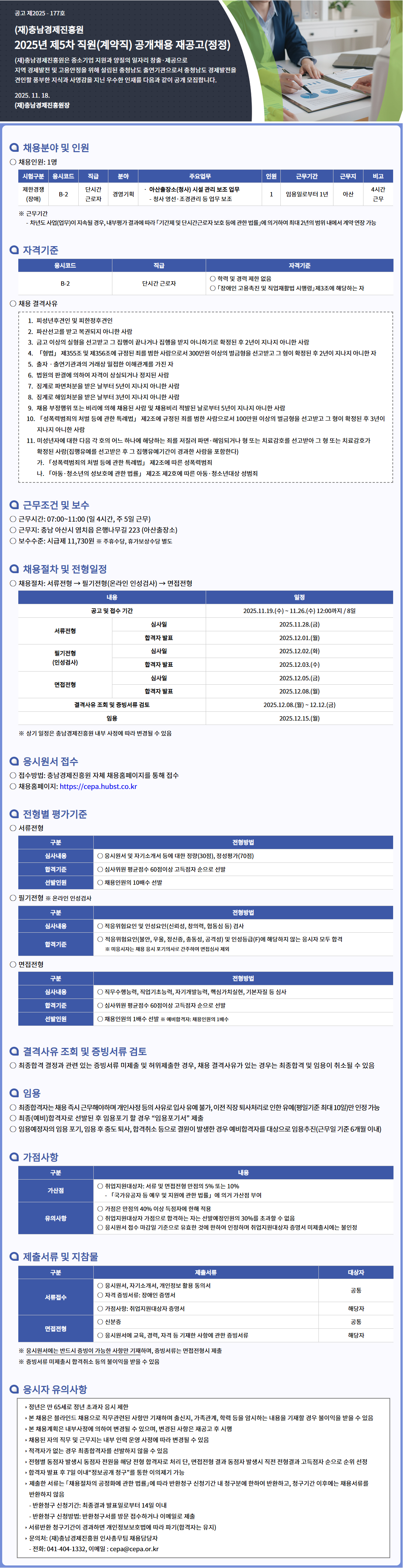 | 2025년 제5차 직원(계약직) 공개채용 재공고(정정) |