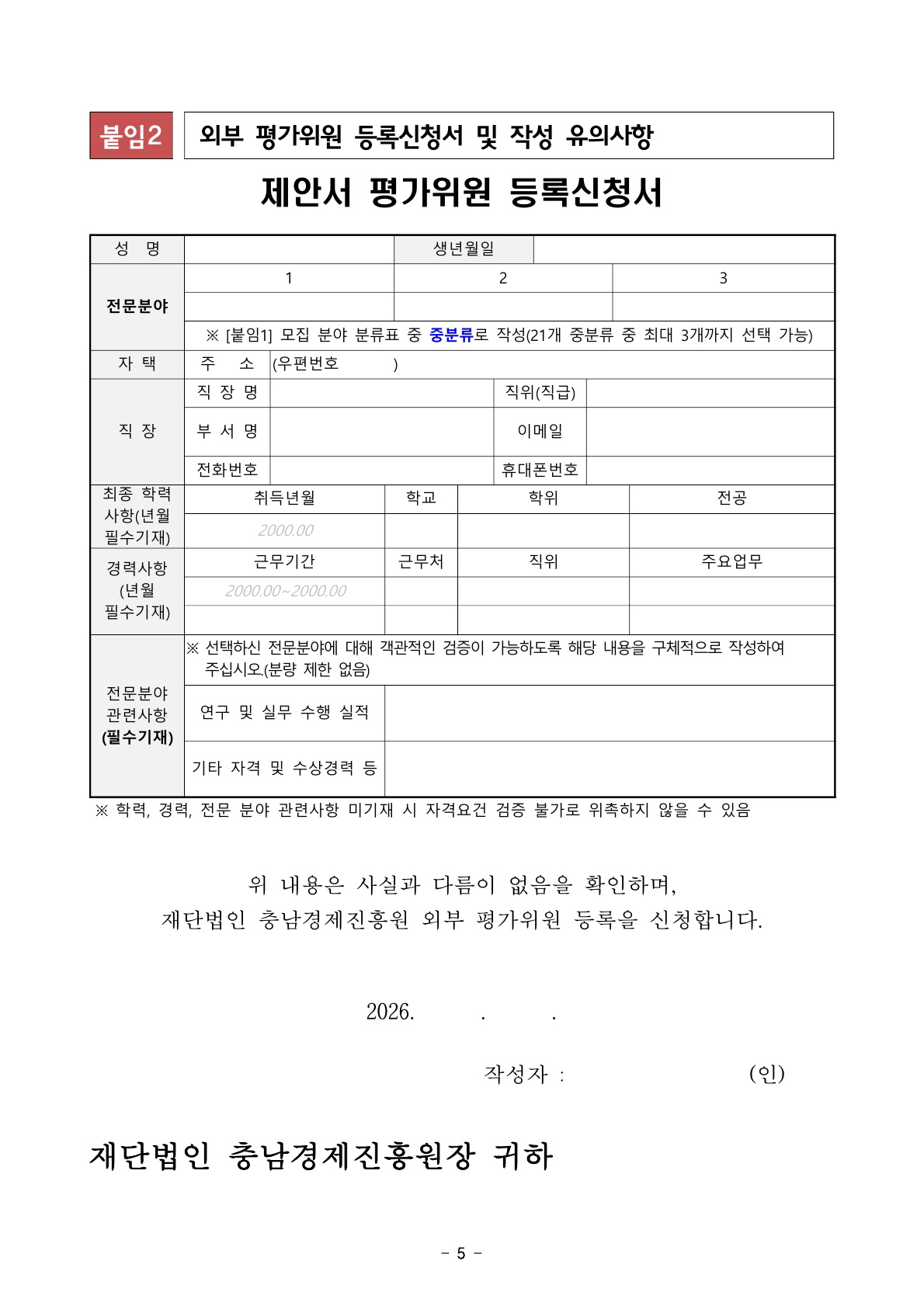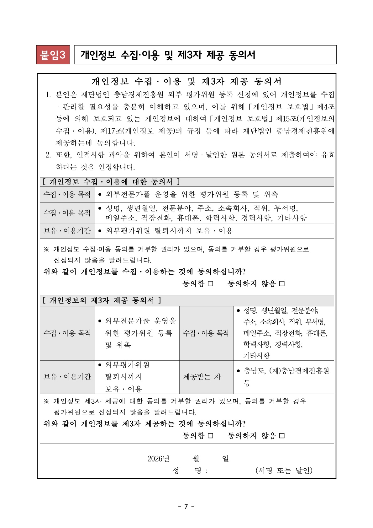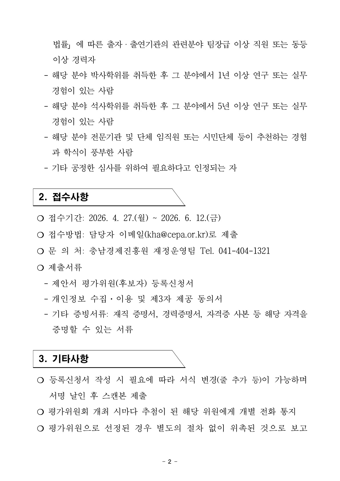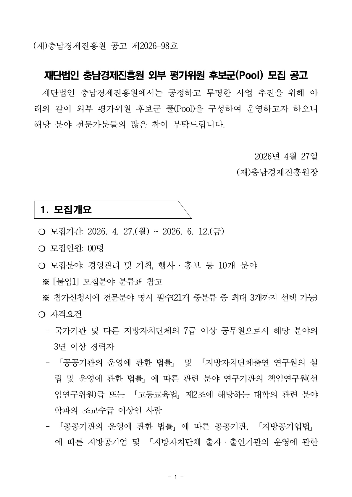 | 재단법인 충남경제진흥원 외부 평가위원 후보군(Pool) 모집 공고 |