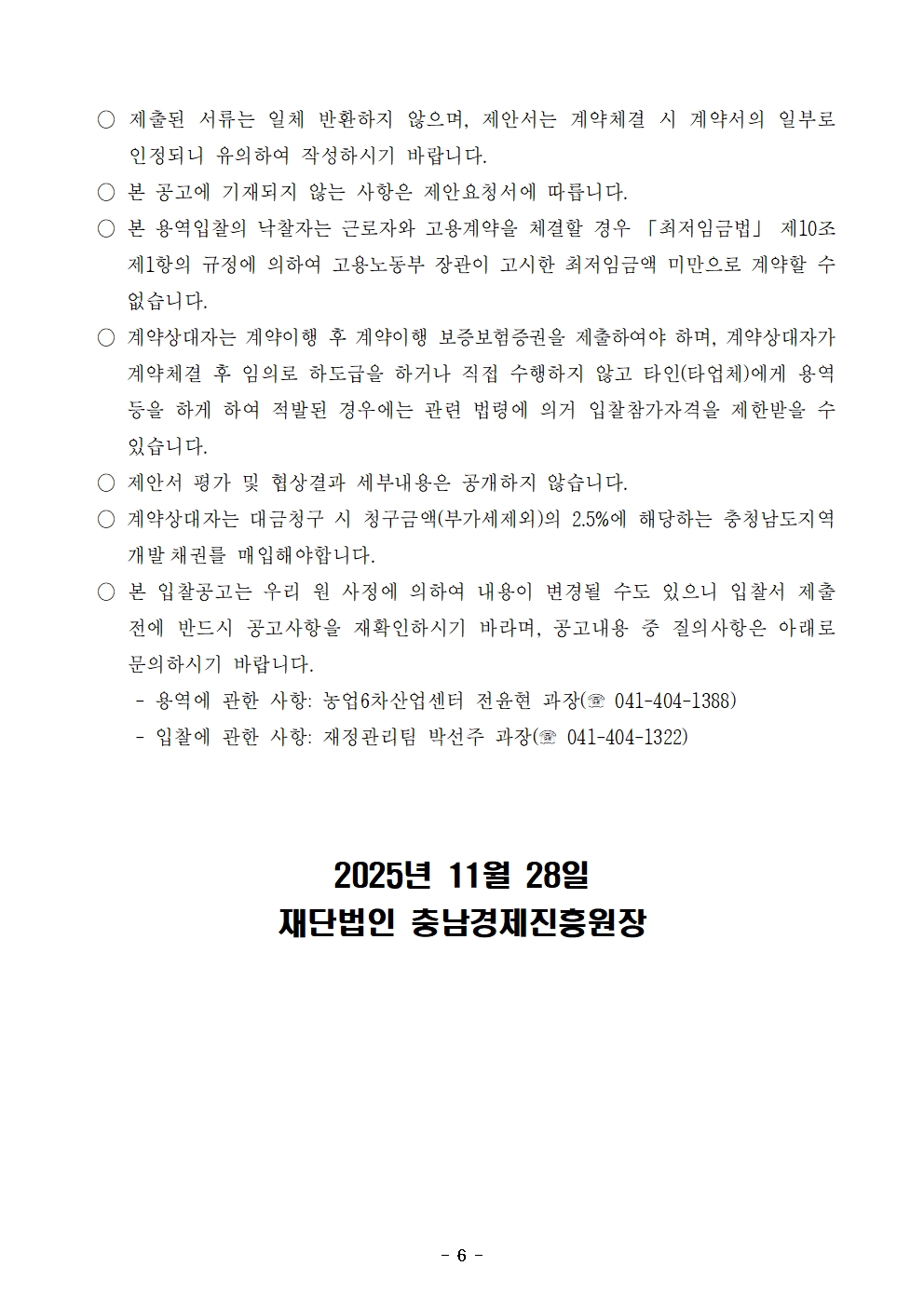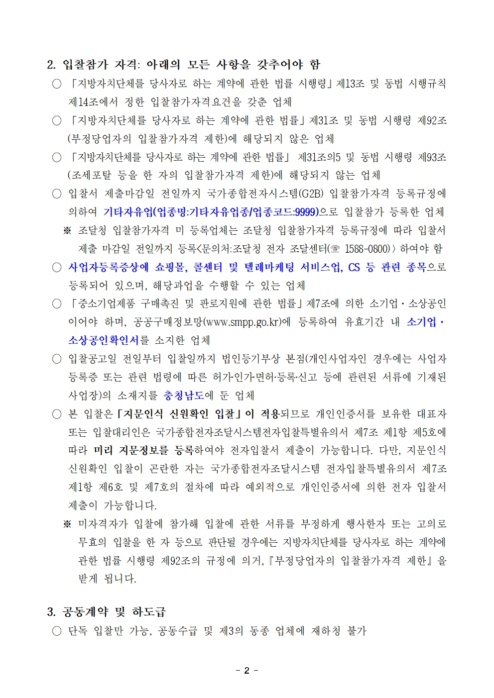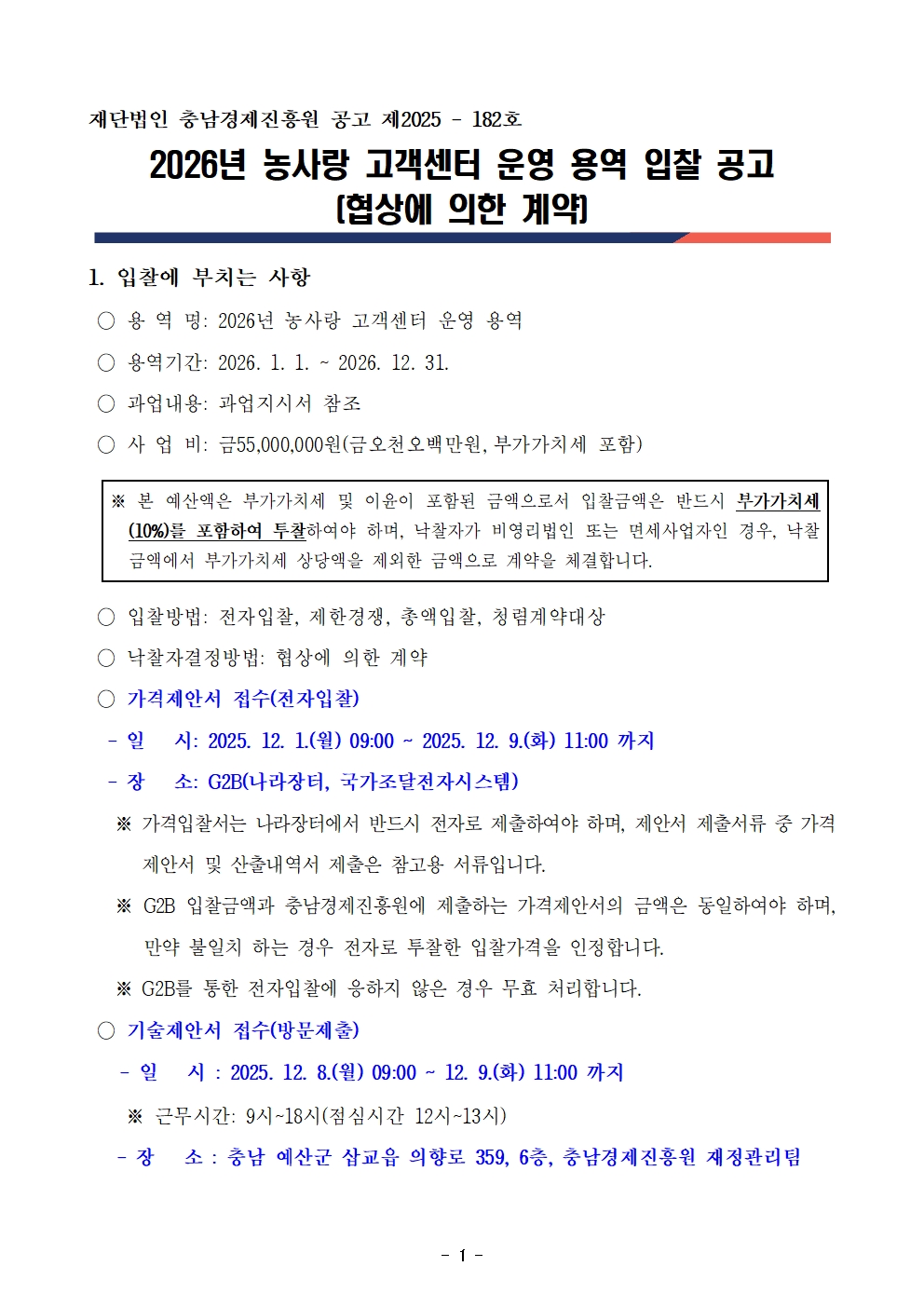| 2026년 농사랑 고객센터 운영 용역 입찰 공고 |