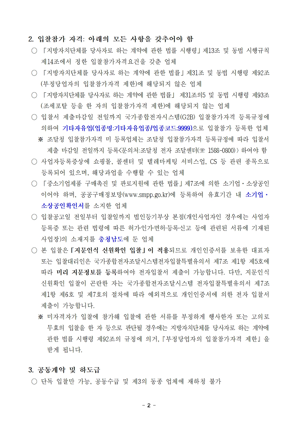 2026년 농사랑 고객센터 운영 용역 입찰 재공고