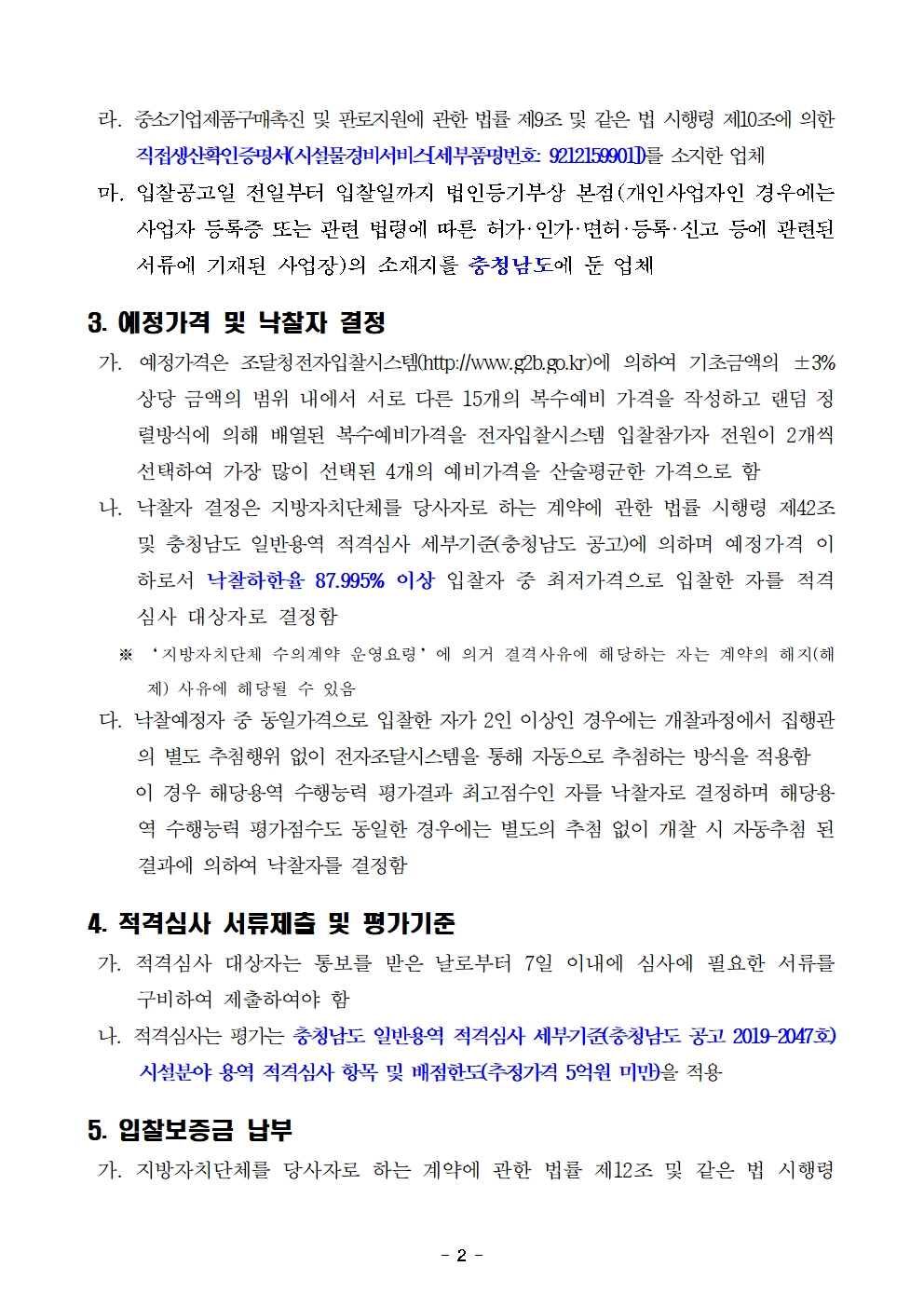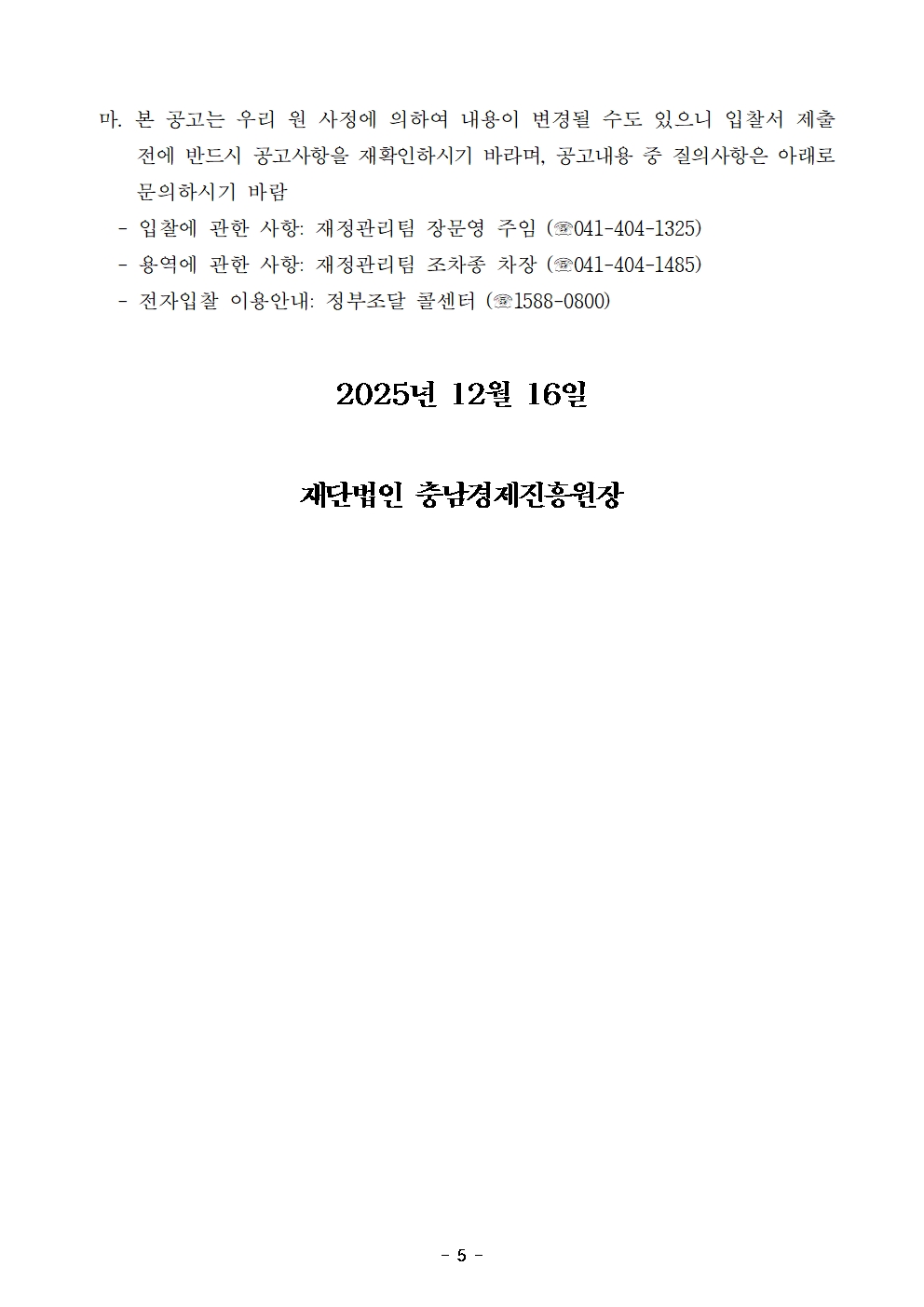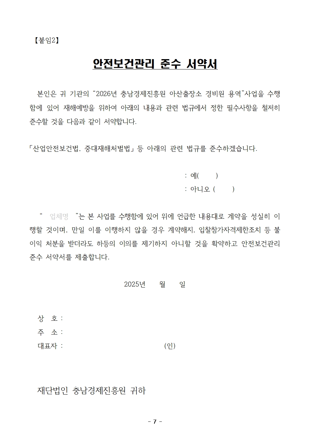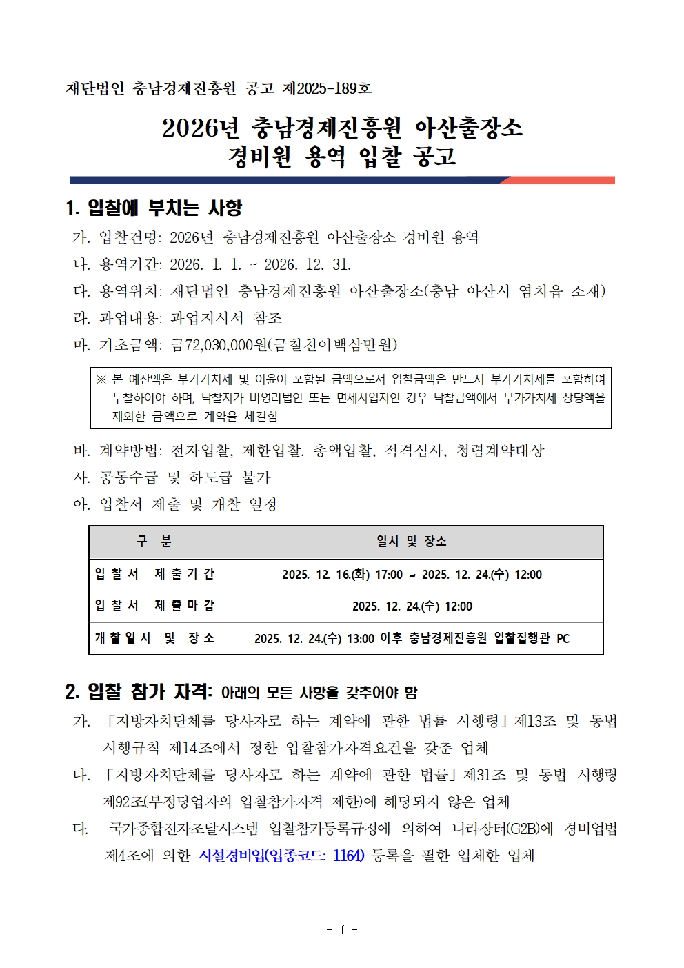 2026년 충남경제진흥원 아산출장소 경비원 용역 입찰 공고