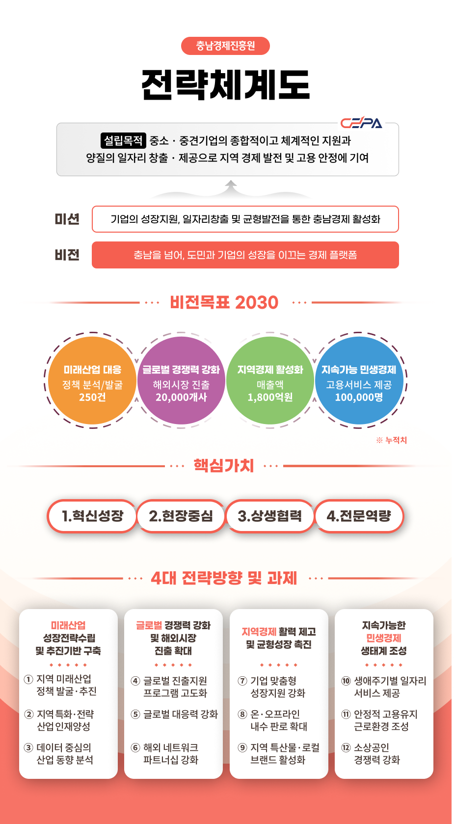 충남경제진흥원의 미션 및 비전에 대해 소개합니다.