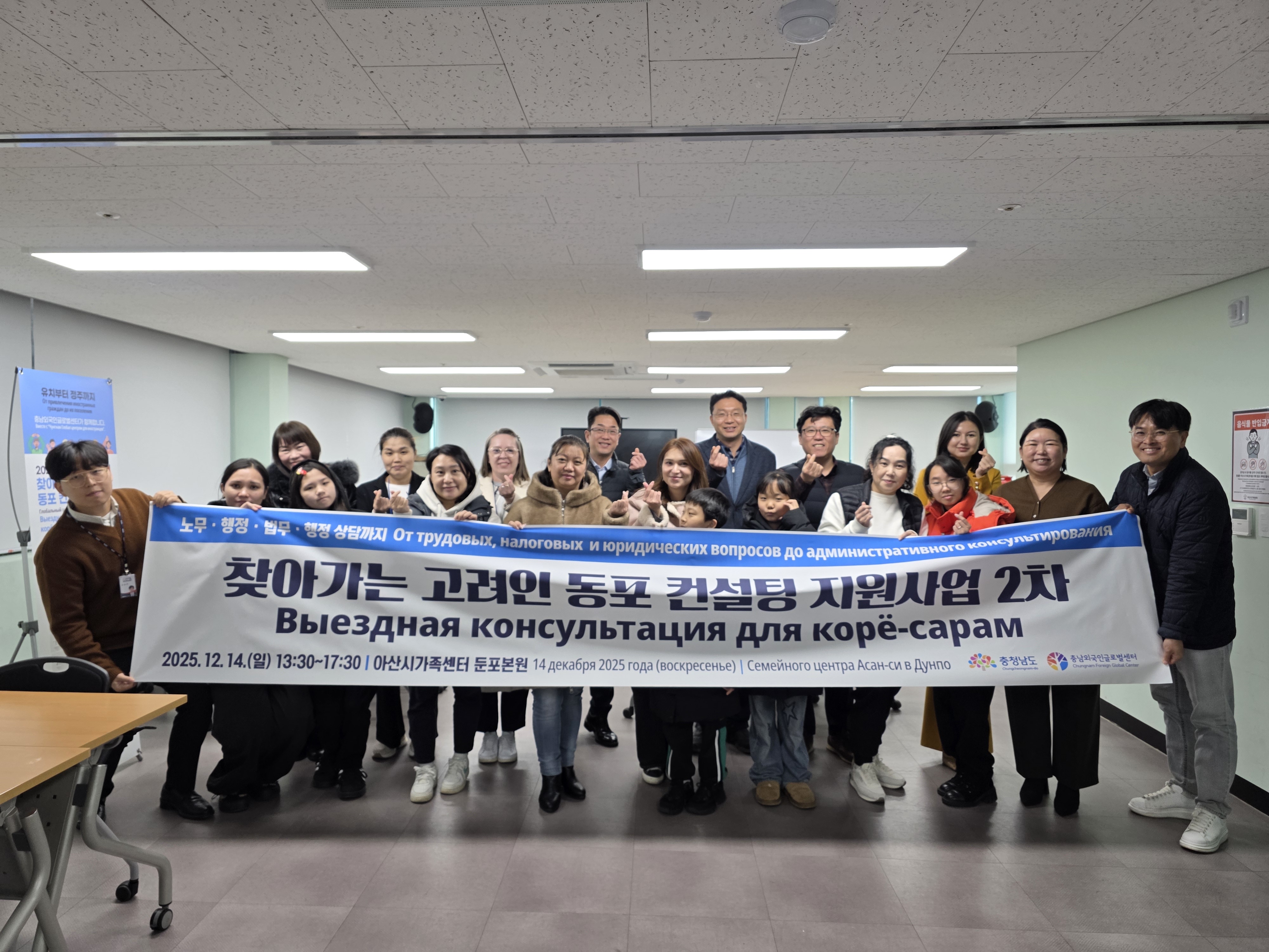 충청남도와 충남외국인글로벌센터(이하 센터)는 지난 11월에 이어 12월 14일 고려인을 대상으로 ‘찾아가는 고려인 동포 컨설팅’을 성료하였다. 지난 11월 8일, 도내에 거주하는 다수의 고려인들이 참석하여 법률, 행정 및 세무 등 전문적인 상담을 받은 바 있으며, 특히 이번 컨설팅에서는 비자 관련 문의, 세금 및 노무 등 1차와 같이 전문적인 고려인 컨설팅이 진행됐다. 한편, 1차 당시 부당해고 사례 접수 중 작성되었던 직접 구제신청 이유서가 노동위원회 접수 이후 극적으로 해결되면서, 피해자 역시 회사의 합의제안을 수용하여 부당해고사건에 대한 금전적 보상이 이루어졌다.