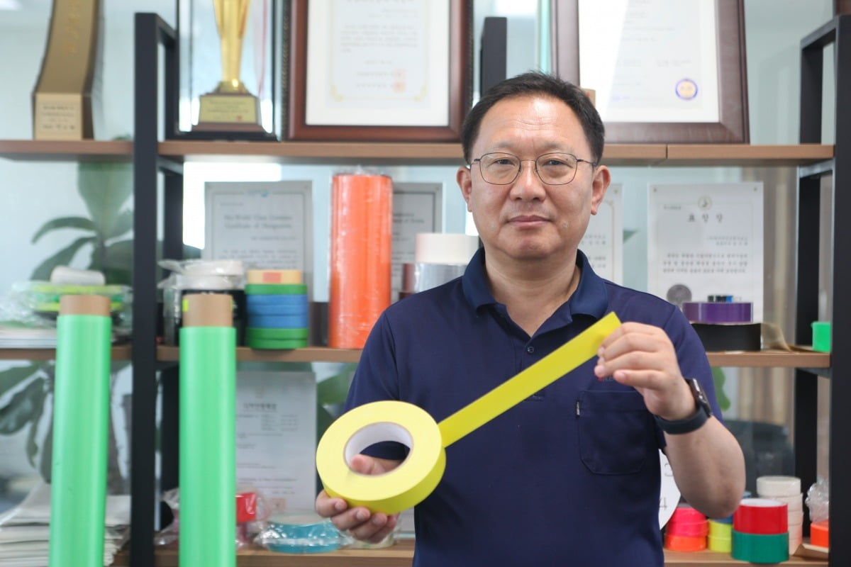 김기태 케이비어드히시브스 대표가 충남 청양 공장에서 게퍼(Gaffer) 테이프의 성능과 특징을 설명하고 있다. 강태우 기자 충남 청양의 점착테이프 제조기업 케이비어드히시브스(대표 김기태)가 ‘게퍼(Gaffer) 테이프’와 ‘건축용 테이프’를 양축으로 한 투 트랙 전략으로 세계 시장 공략에 속도를 내고 있다. 회사는 20여 종의 점착테이프를 국내 조선·건설·방송 업계를 비롯해 북미, 유럽, 동남아, 인도, 아프리카 등 30여 개국 100여 개 기업에 수출하고 있다. 이 회사는 천연고무를 접착제로 코팅한 친환경 면 테이프를 주력으로 생산한다. 인장 강도와 접착성이 뛰어나고 접착 표면과의 호환성이 좋아 방수와 습기 차단, 비닐 수리, 묶음 등 다양한 용도로 사용된다. 이 회사는 약 10억원을 투입해 국내 처음으로 테이프 표면을 코팅하지 않고, 쉽게 떼서 사용할 수 있는 ‘게퍼 테이프’를 국산화하는 데 성공했다. 기존 천 테이프는 표면 코팅 탓에 글씨나 표시가 지워졌지만, 이 회사 제품은 표시 유지와 색상 구분이 가능하다. 직각으로 쉽게 찢을 수 있고, 제거 시 잔여물이 남지 않는다. 또한 무반사 특성으로 공연장·방송·영화 촬영 현장 등 빛 반사가 문제 되는 환경에서 적합하다. 2018년 공장 전소라는 위기를 겪었으나, 140억원을 들여 고성능 설비와 스마트 공장 체계를 재구축해 정상화를 이뤘다. 코로나19 시기 공연 산업 침체로 매출이 급감했지만, 전기·전자·자동차·건설 등 산업 전반으로 수요를 다변화하며 성장 기반을 마련했다. 현재는 건물이나 창틀 마감용으로 사용하는 사계절용 방수 테이프 등 건축용 제품군으로 영역을 넓히며 국내외 건축업계 공급을 추진 중이다. 독일 퀼른 전시회, 미국 라스베이거스 하드웨어 쇼 등에서도 신제품을 선보이며 해외 영업망 확장에 박차를 가하고 있다. 김기태 대표는 “게퍼 테이프의 품질과 기술력은 이미 국내외에서 인정받았다”며 “해외 판로를 넓히고 건축용 테이프 시장 진출로 사업을 다각화하며, 환경을 고려한 신제품 개발에 지속적으로 힘쓰겠다”고 말했다. *출처: 한국경제 강태우 기자(https://www.hankyung.com/article/202511120389h) |